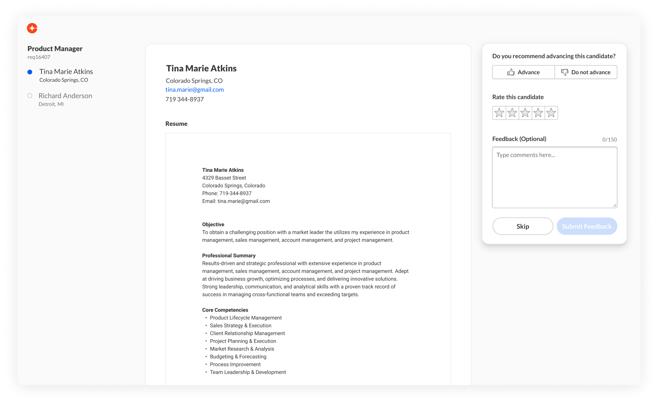 Candidate feedback has been moved to a separate tab, with notifications appearing when new feedback is received.